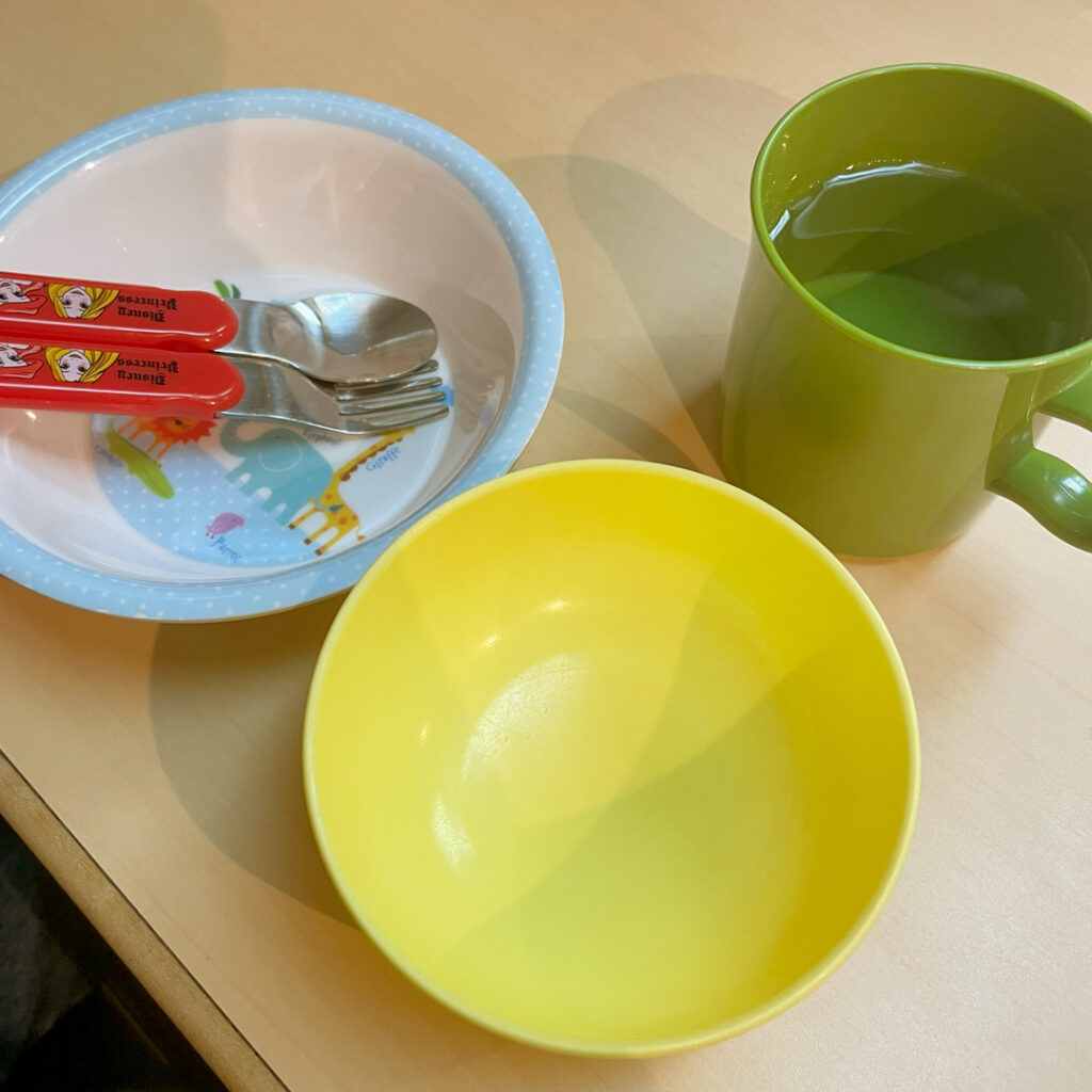 ふじやま亭の魅力は、子連れにも優しい点!コンパクトな店内ですが、店の奥にはソファのボックス席があり、じっと座っていられない小さなお子さんも安心して食事が楽しめます。さらに、子供用の椅子や、プラスチック製の取り分け皿、子ども用フォーク・スプーンも用意していただけるのもうれしいポイントです。