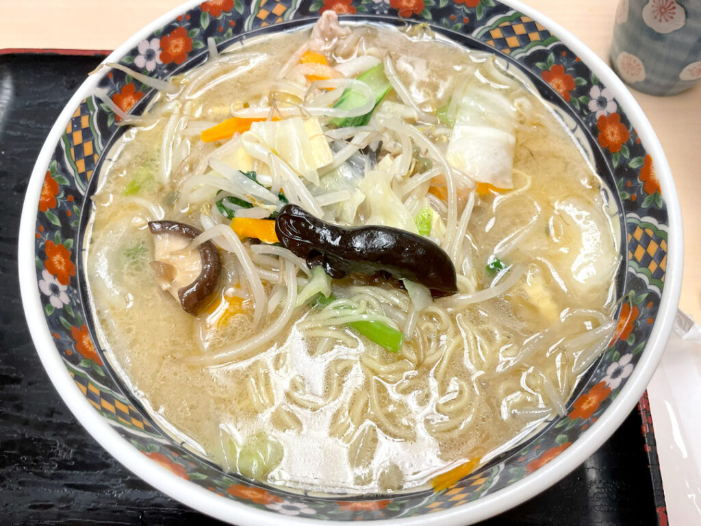たっぷり野菜の「ふじやまタンメン」も美味!普段野菜を食べない我が子も、何度もおかわりして野菜を食べていました。通常は細麺ですが、平太麺も選べるそうです。そうした細かい配慮もうれしいですね。